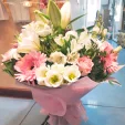 Отличная работа, сюда можно обращаться если нет времени искать букет и бегать по магазинам, буду рекомендовать ваш магазин. Цветы свежие, букет объемный. Спасибо выручили.